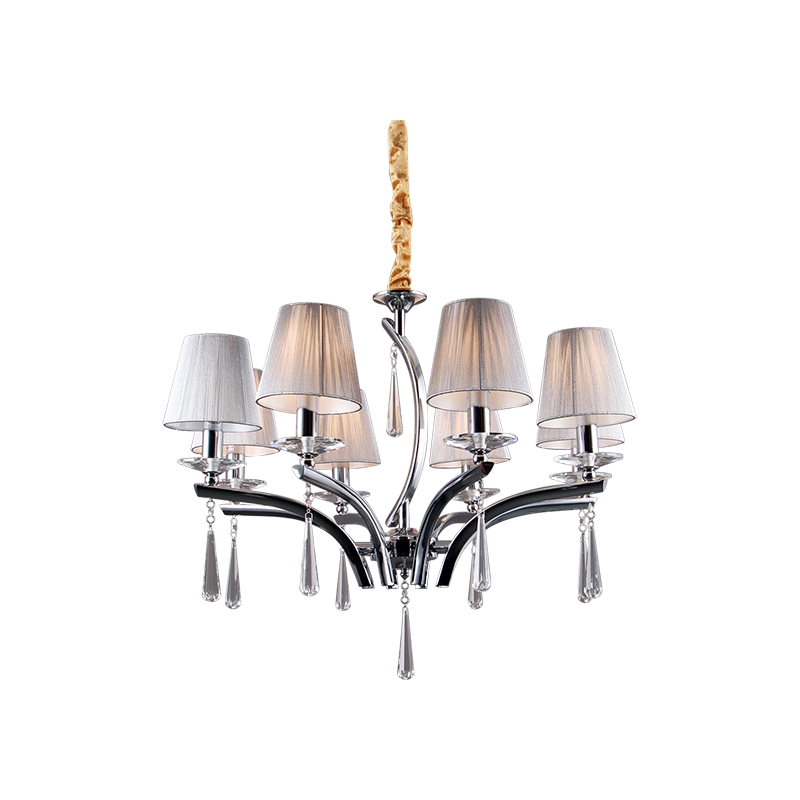 | Chất liệu | Kim loại mạ chrome, pha lê, chao vải | |