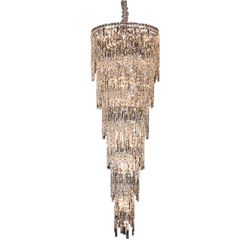 Hiệu Ứng “Thác Nước” Độc Đáo: Điểm nhấn khác biệt của mẫu đèn này là hàng ngàn sợi pha lê K9 cao cấp. Loại pha lê này có độ trong suốt và tán sắc ánh sáng rất tốt. Chúng được kết thành sợi dài, buông rủ mềm mại, tạo ra một hiệu ứng thị giác uyển chuyển. Mỗi khi đèn bật sáng, không gian sẽ tràn ngập trong một “vũ điệu ánh sáng” đầy mê hoặc.