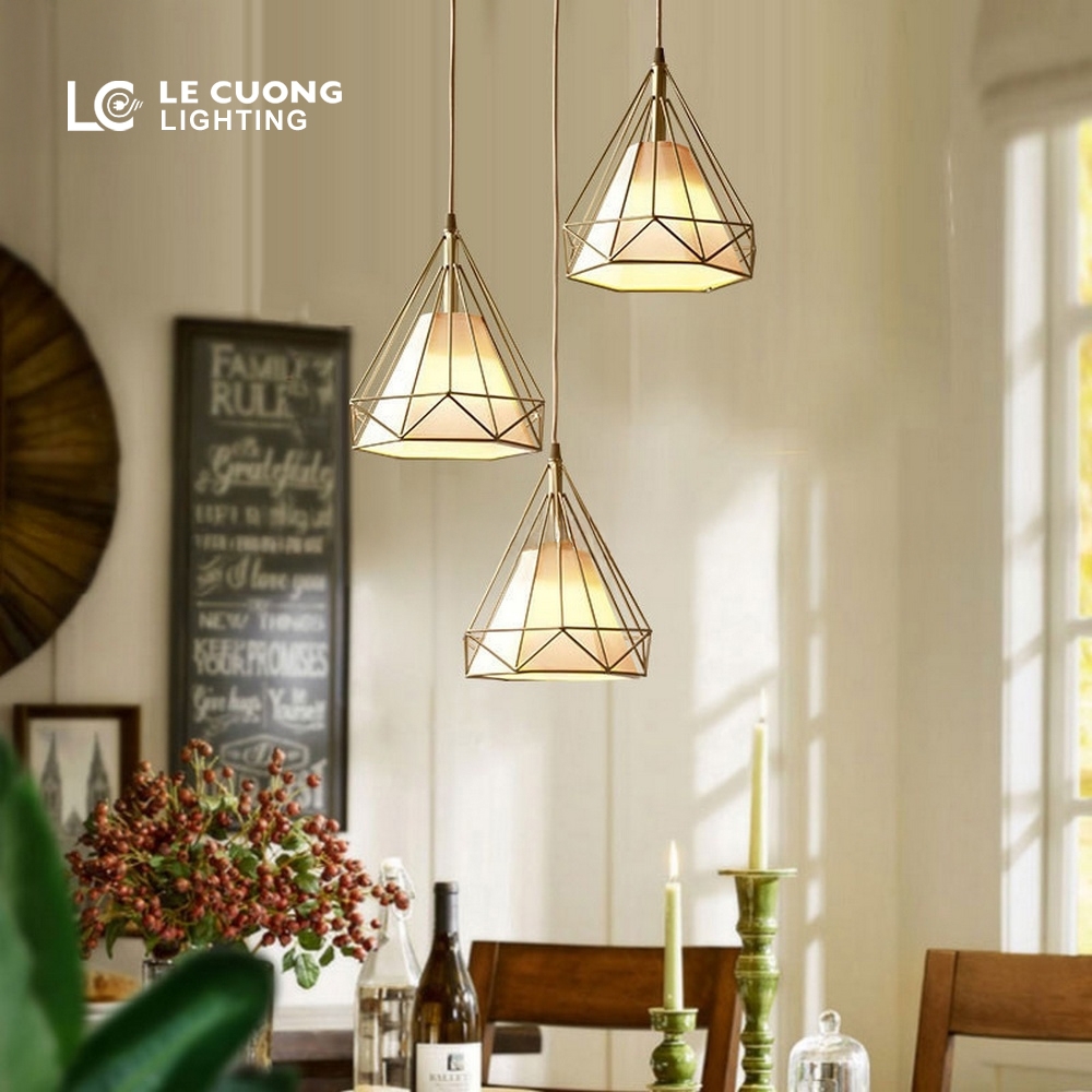 Đèn thả 3 kim cương sở hữu thiết kế độc đáo với ba chao đèn hình kim cương tinh xảo, tạo điểm nhấn ấn tượng cho không gian. Sản phẩm mang phong cách hiện đại, phù hợp cho phòng ăn, quầy bar, quán cà phê, nhà hàng, giúp không gian thêm phần sang trọng và đẳng cấp.
