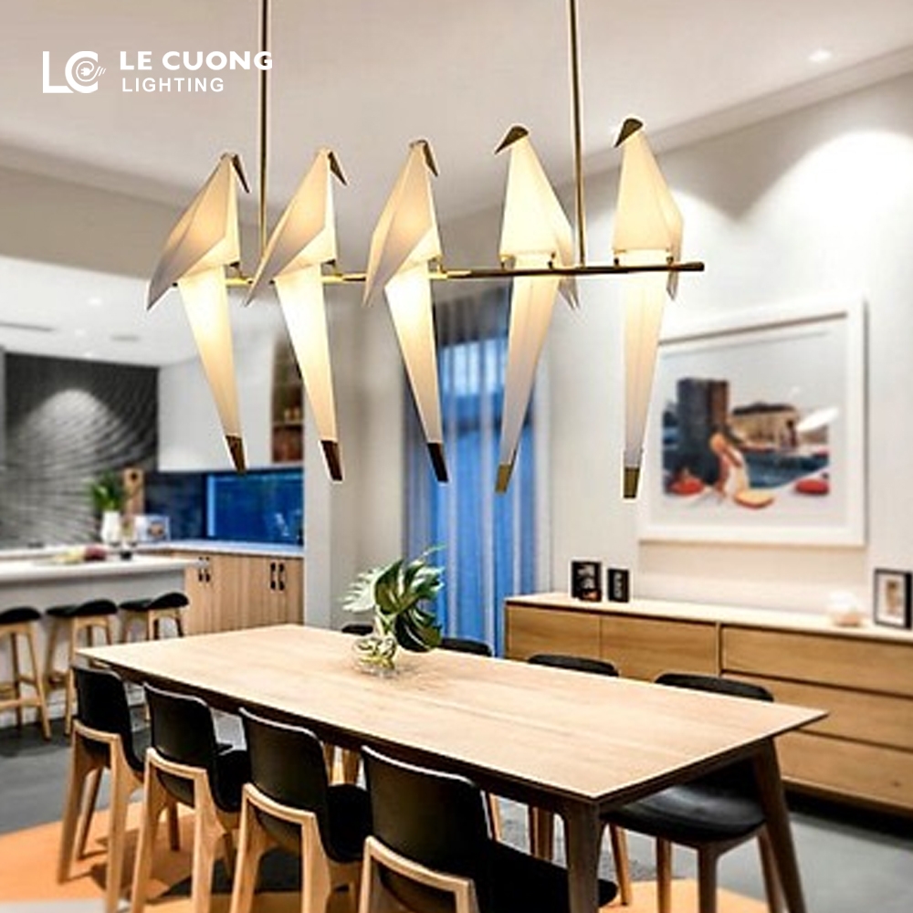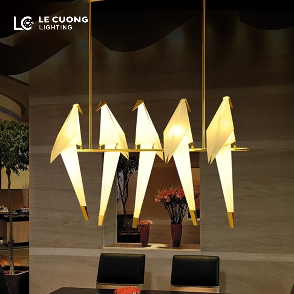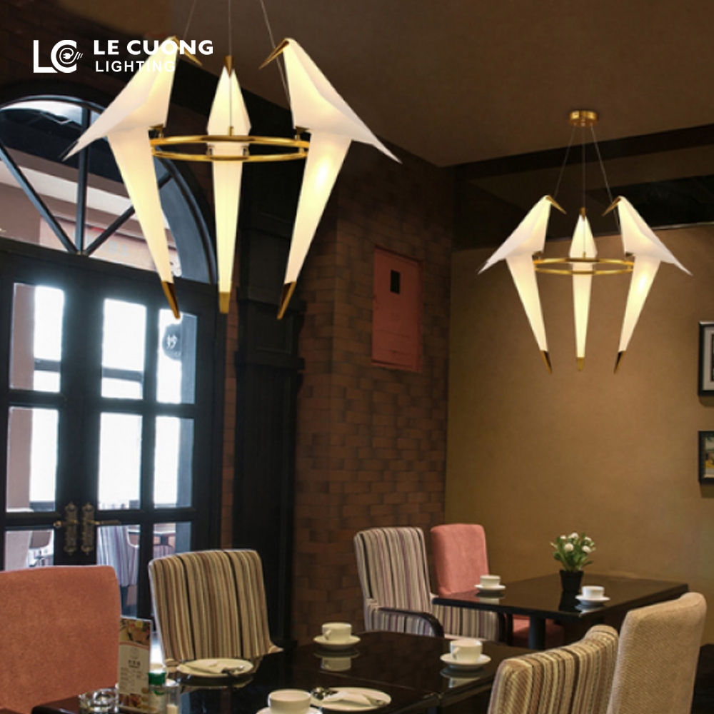 Đèn thả chim hạc mang thiết kế tinh tế, đầy nghệ thuật, lấy cảm hứng từ hình ảnh chim hạc thanh thoát, biểu tượng của sự may mắn, bình an. Kiểu dáng mềm mại kết hợp với ánh sáng dịu nhẹ tạo nên một không gian sang trọng, ấm cúng, phù hợp với phòng khách, phòng ăn, quán café, nhà hàng, khách sạn cao cấp.
