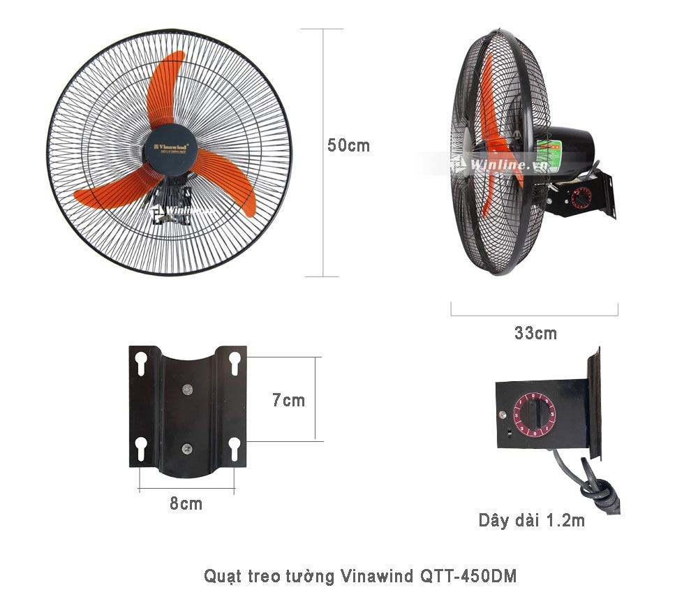 | Tên sản phẩm | Quạt treo tường Vinawind QTT-450DM |